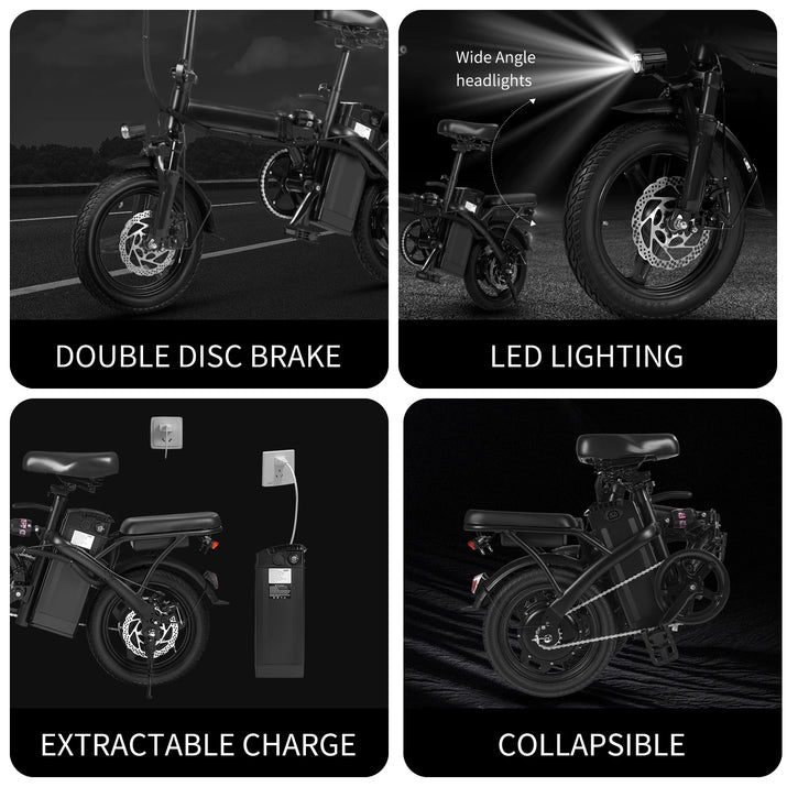 400W dual disc brake adult foldable electric bicycle with seat and basket 14 inches 48V 10.4Ah 22 mile range 20MPH